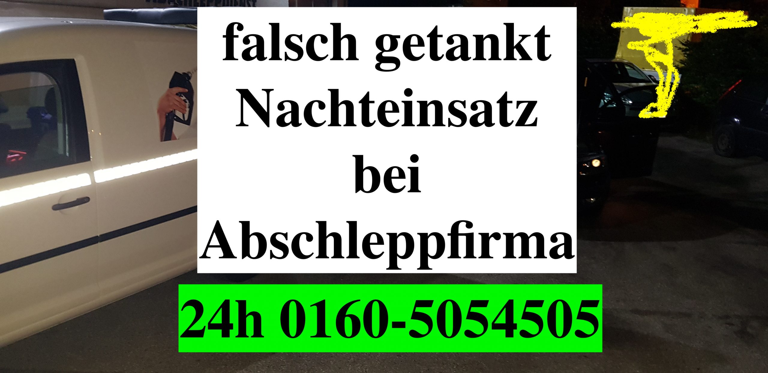 falsch getankt Werbung mit Telefonnummer 01605054505 Auto Pannenhilfe 24h Notdienst Mobil und website www.falschtanken24.de in München